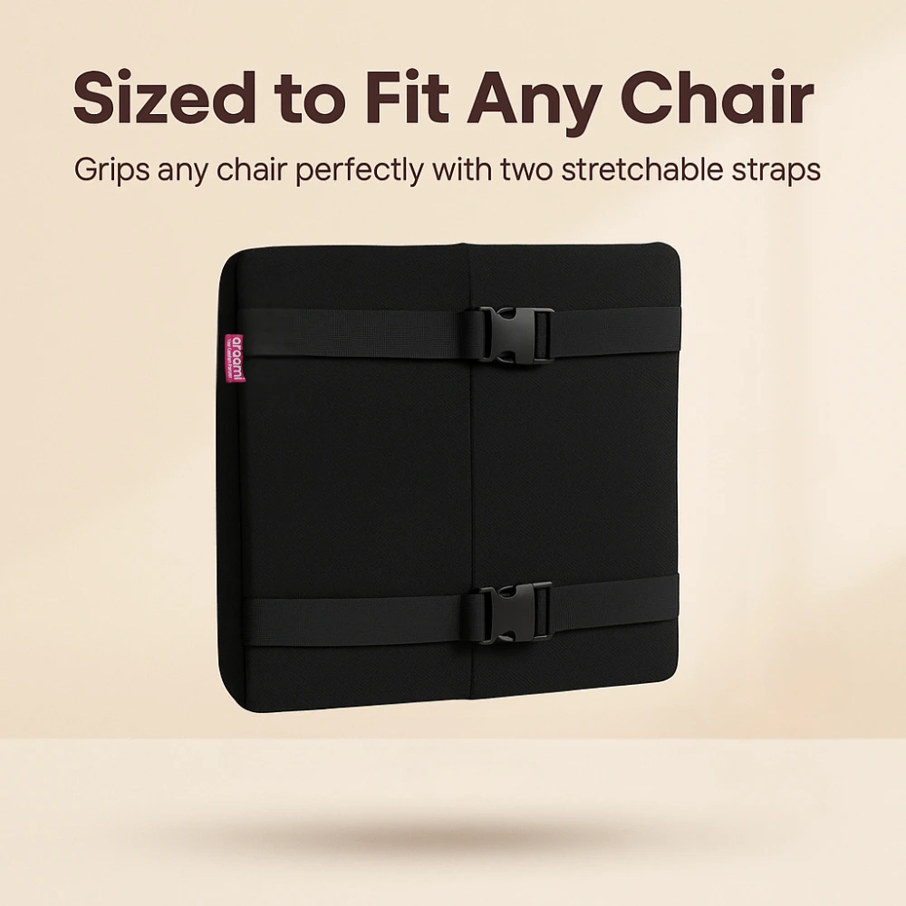 With a simple, secure strap system, the cushion installs easily on any chair—transforming even the most basic seat into a back-friendly support zone.