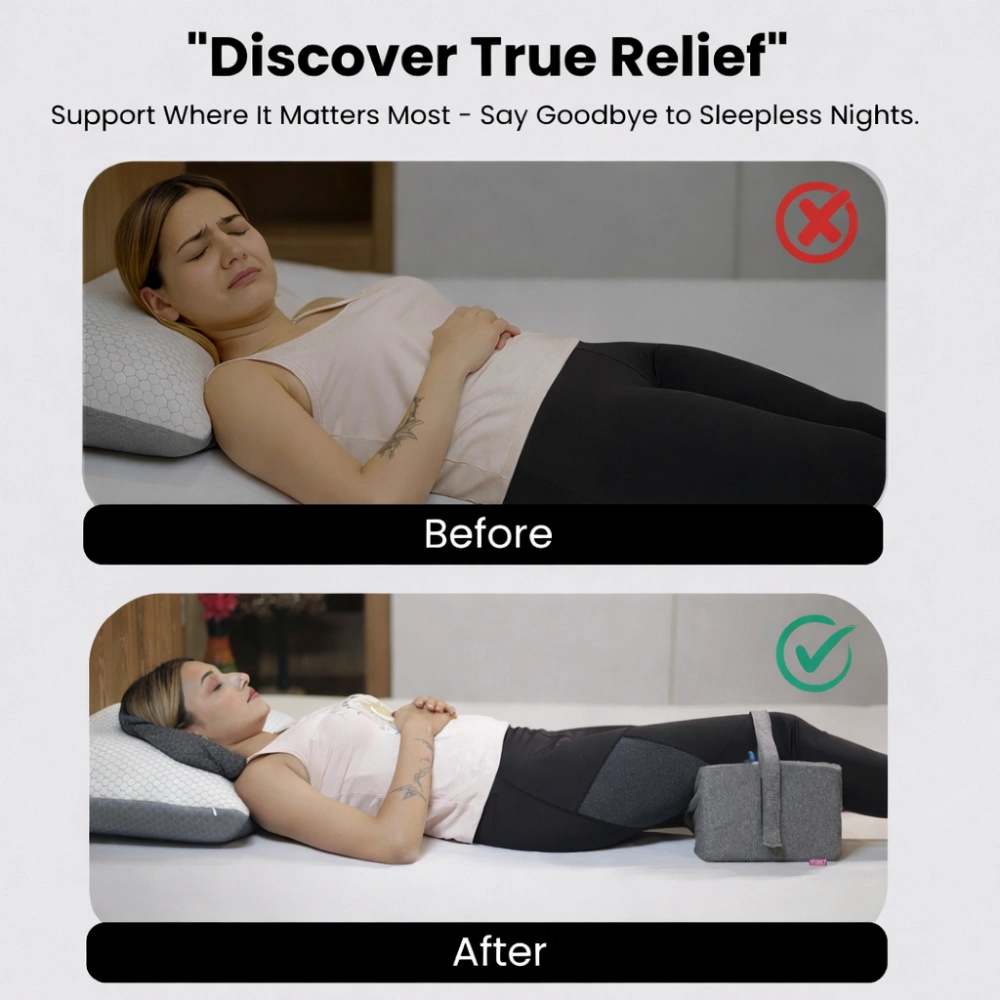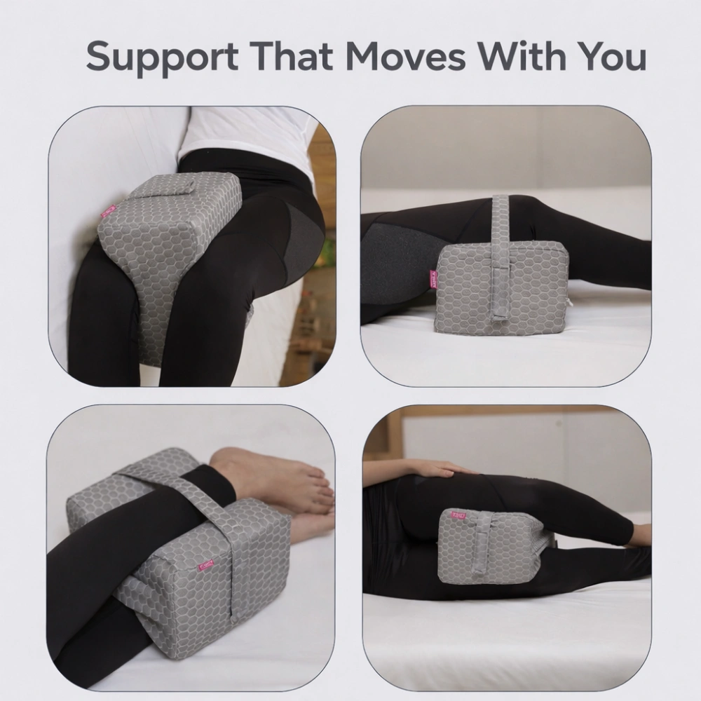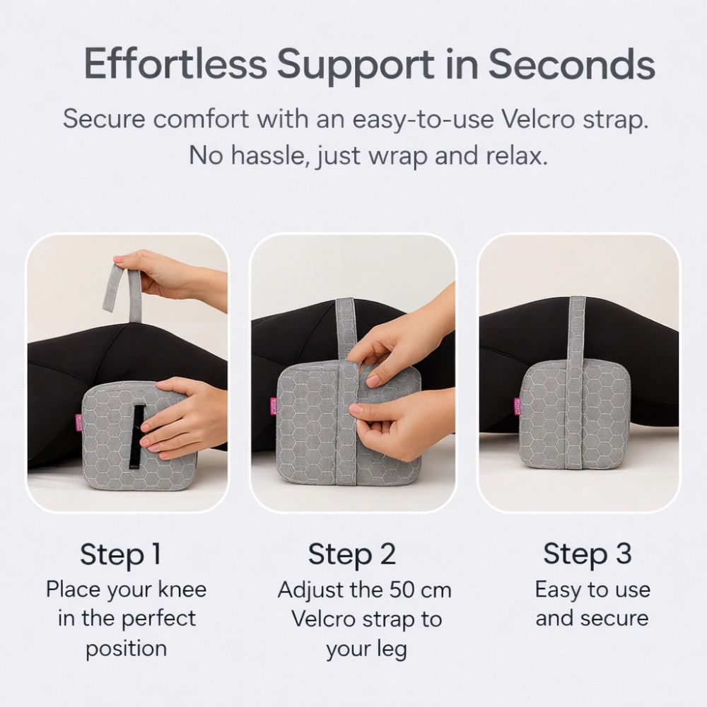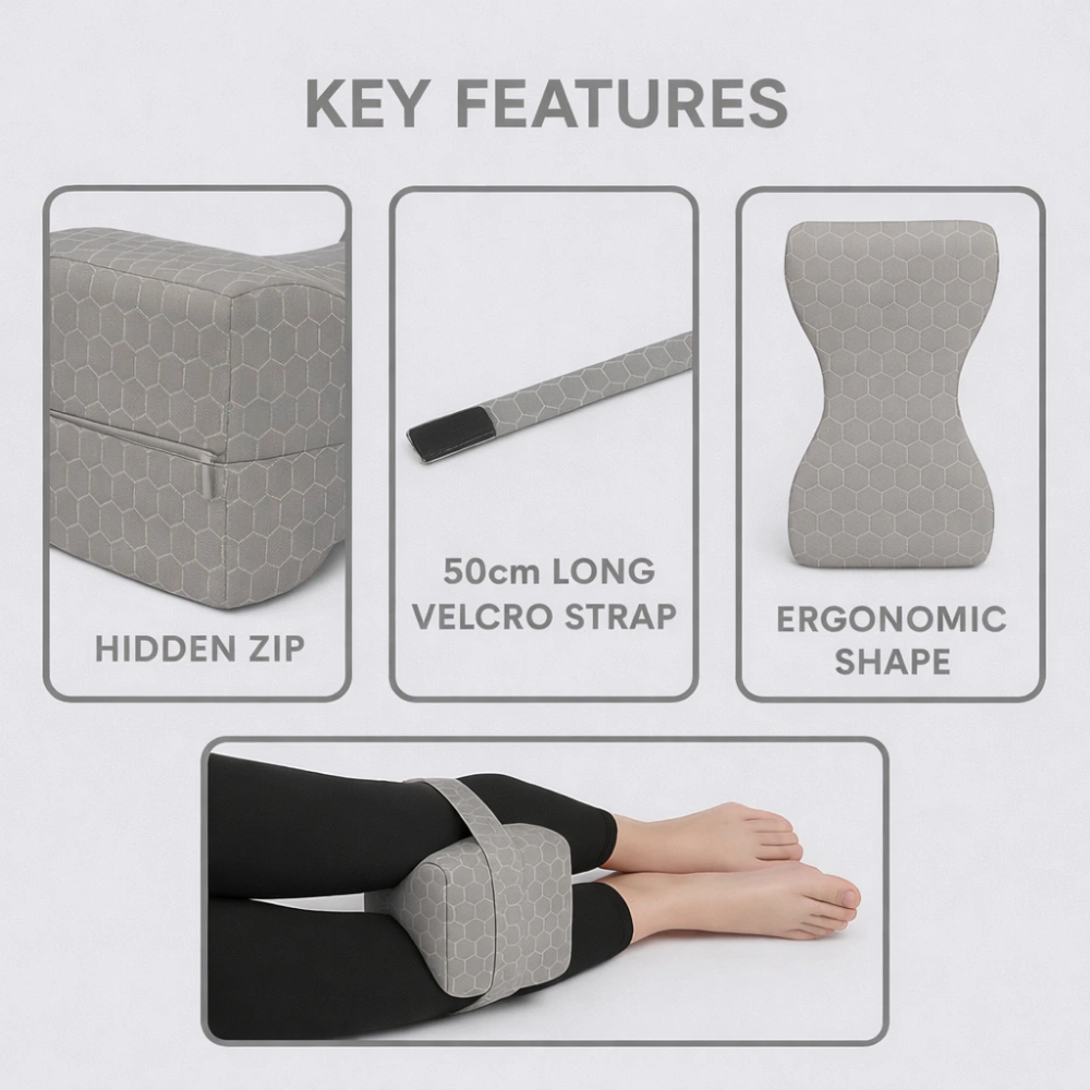 Engineered for proper spine alignment and joint pressure relief, this knee cushion helps reduce sciatica, hip discomfort, and supports a restful, healthy sleep.