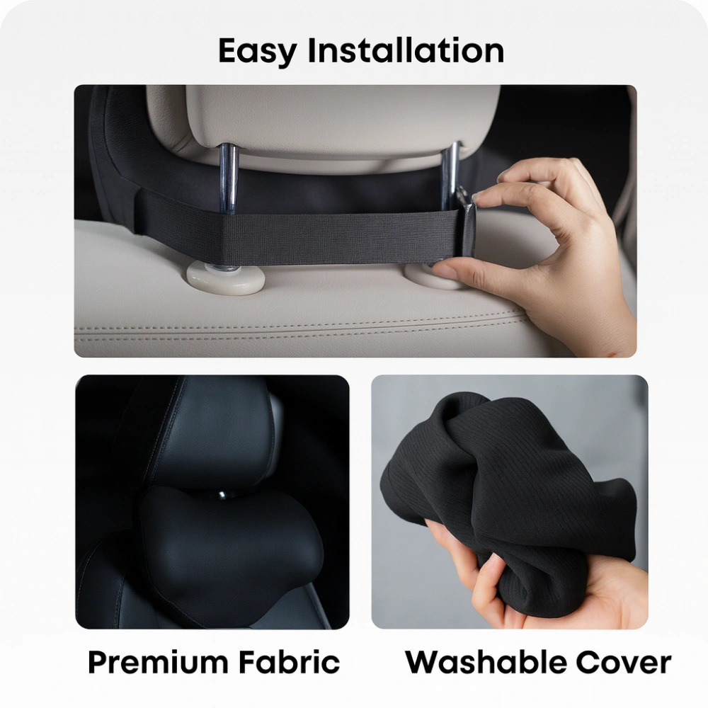 Adapts to your body’s natural contour for balanced neck and spine support, ensuring a relaxed experience even on long drives.
