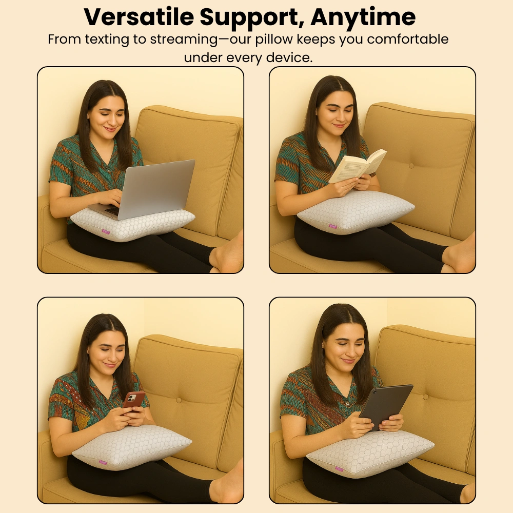 Designed for real daily use, this multi-purpose cushion acts as a soft lap desk—giving you ergonomic comfort for every activity on the sofa.