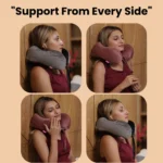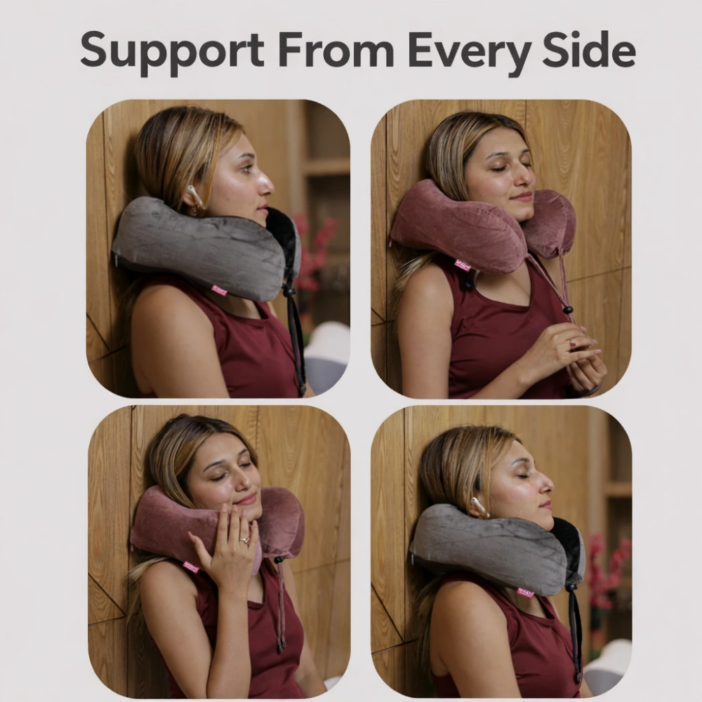With enhanced side curves, this travel cushion gently supports your cheeks and jaw—preventing head tilt and reducing neck strain during long journeys.