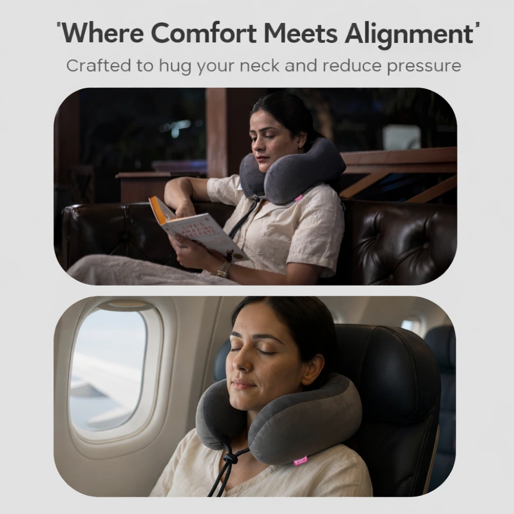 Designed for travel, this cushion gently cradles your neck and prevents awkward angles—helping you arrive relaxed, not sore.